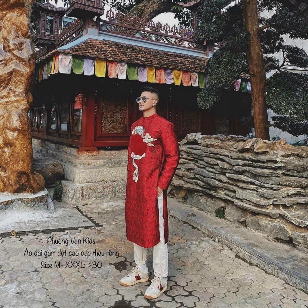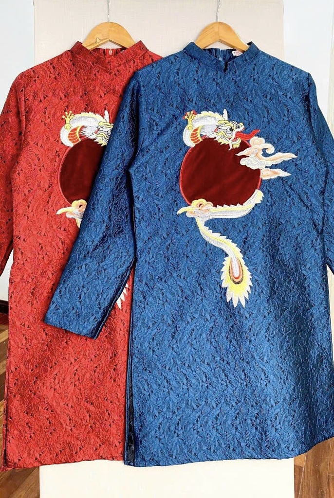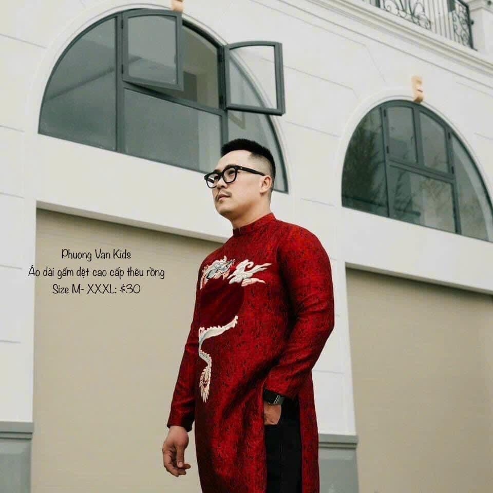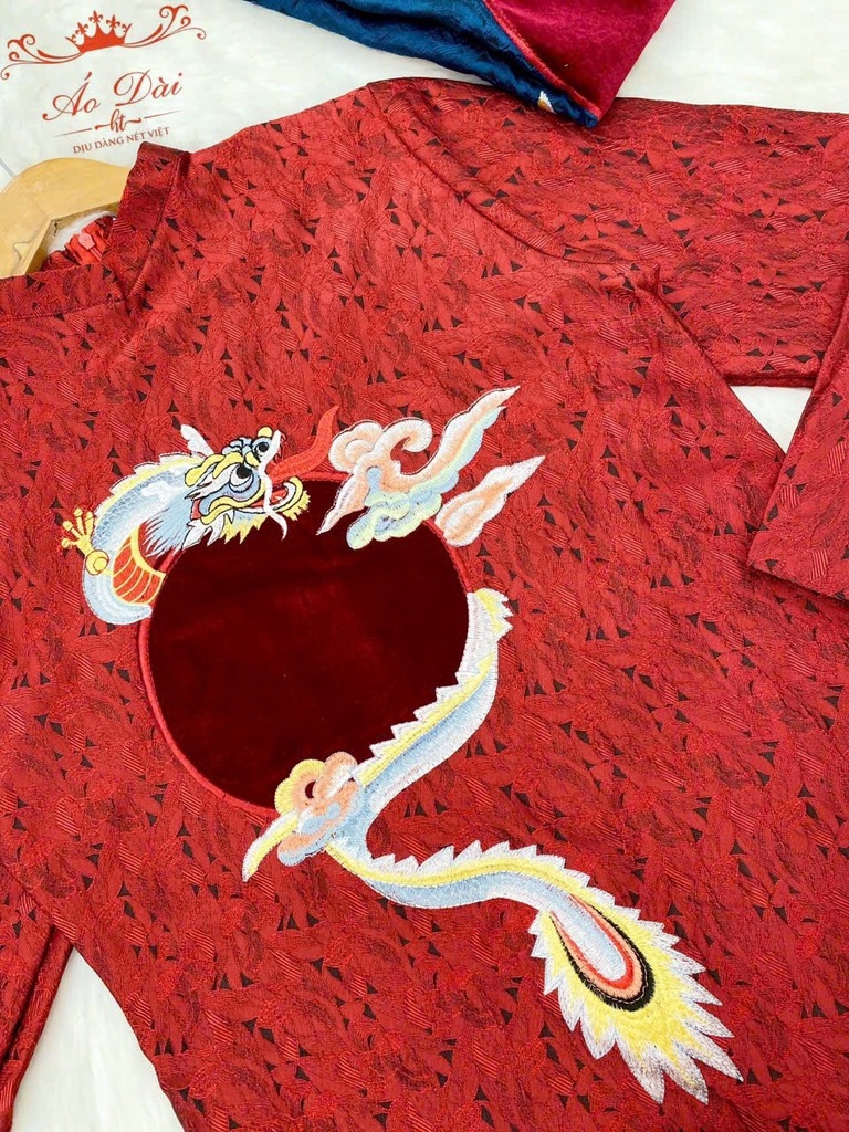 Áo dài gấm dệt đỏ cao cấp thêu rồng