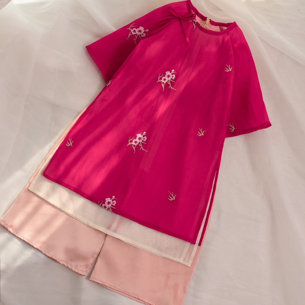 Áo dài tường vy - hồng sen