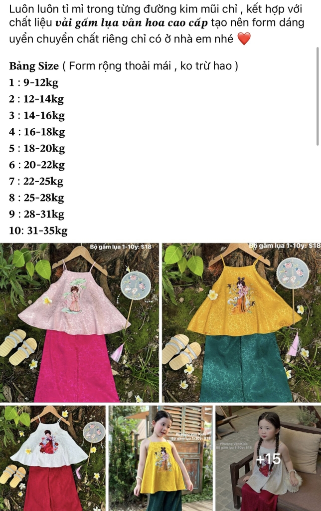 PVK cung cấp cụ thể thông tin về size, chất liệu, ảnh mẫu/ ảnh tự chụp và những lưu ý cho từng mã hàng. Khách hàng check kĩ thông tin, cần tư vấn thêm inbox Phuong Van Kids ạ